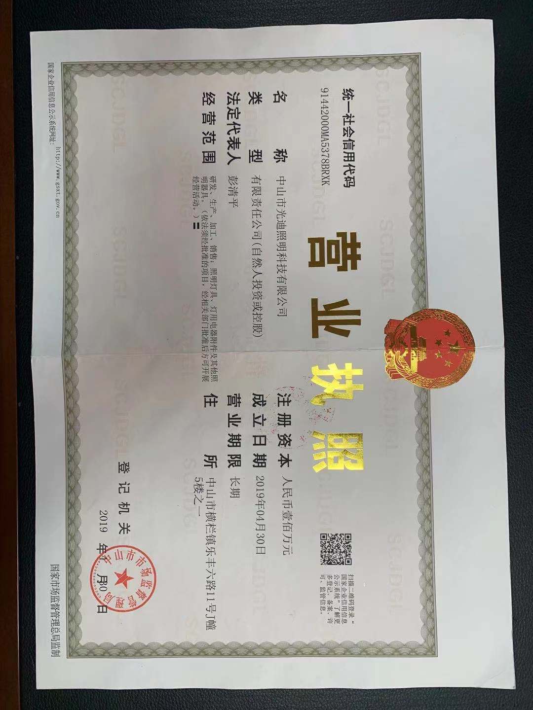 Zhongshan Guangdi Lighting Technology Co., Ltd. was founded on July 10, 2009.