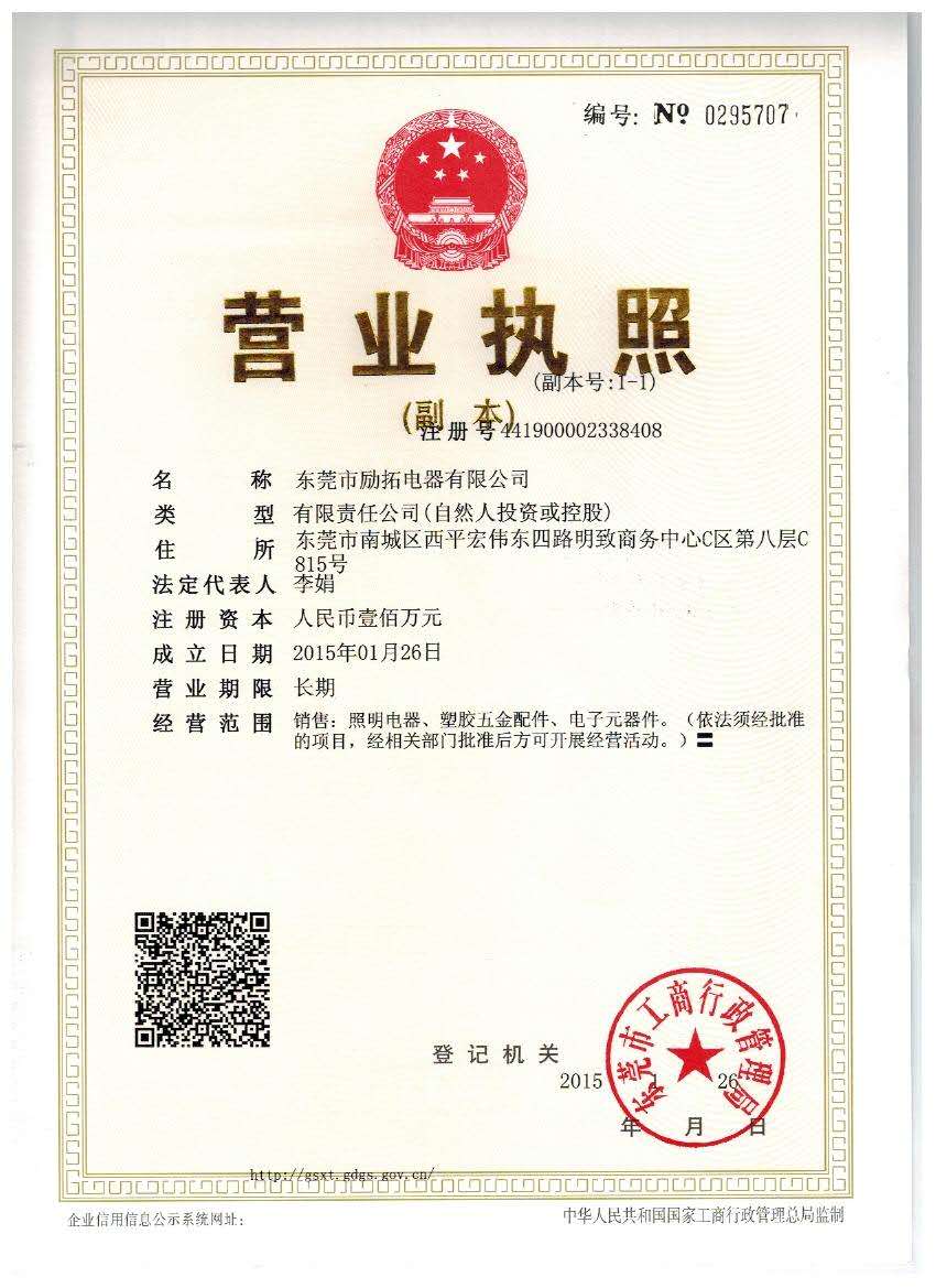 Dongguan Litop Electronics Co., Ltd. is located at the east coast of the Pearl River Estuary, Dongguan, a famous historical and cultural city in Guangdong Province, No. 815, 8th floor, C District, Mingzhi Business Center, Xiping Grand East Fourth Road, Nancheng District, Dongguan City. It was registered with Dongguan Administration for Industry and Commerce on January 26, 2015. Its registered capital is RMB 1 million. Our company mainly operates through Marketing sales: lighting appliances, plastic hardware accessories, electronic components.