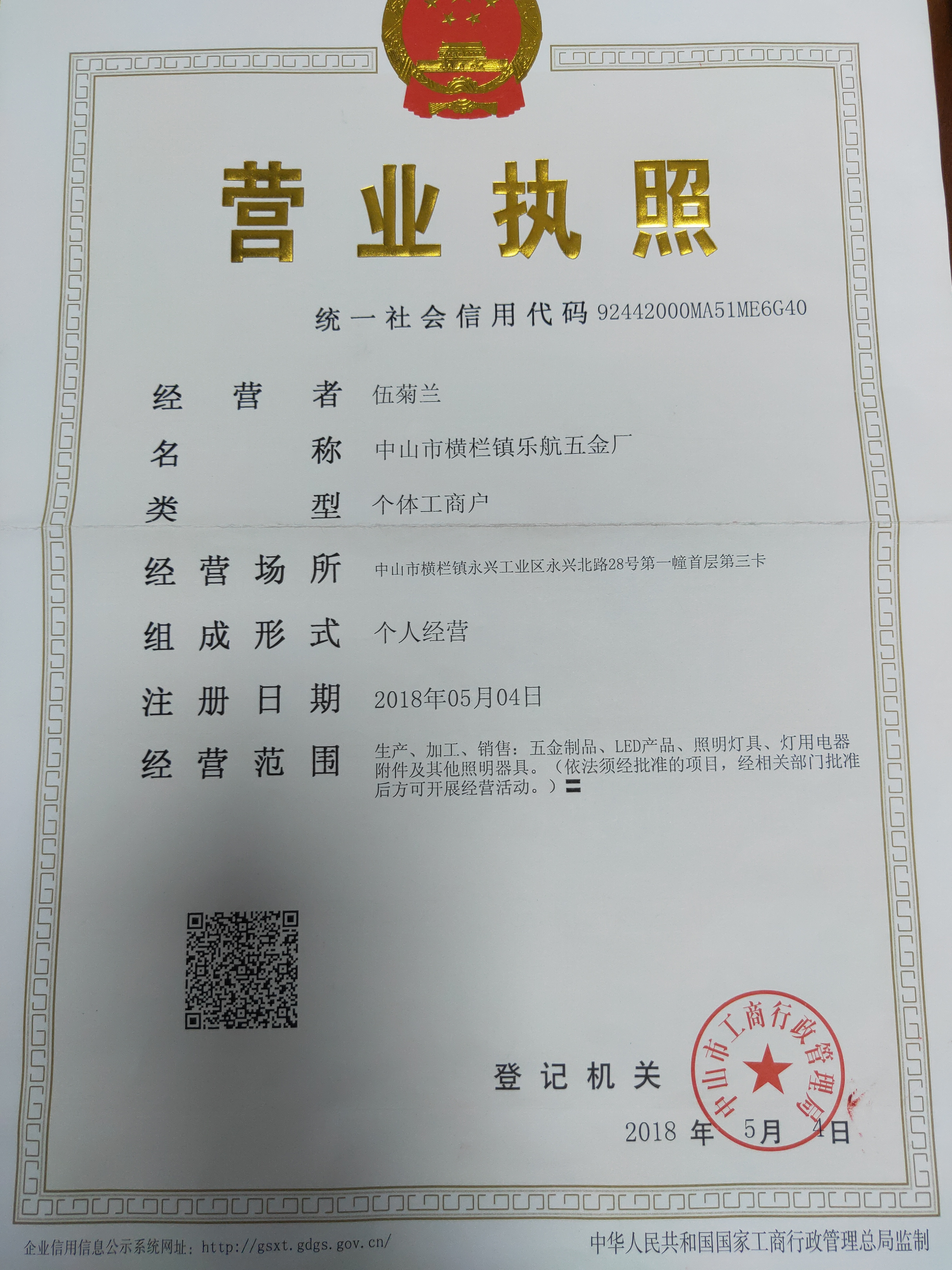 number 12, FuYe Road, Yongxing Industrial Zone, Henglan Town, Zhongshan City, Guangdong Province,China
