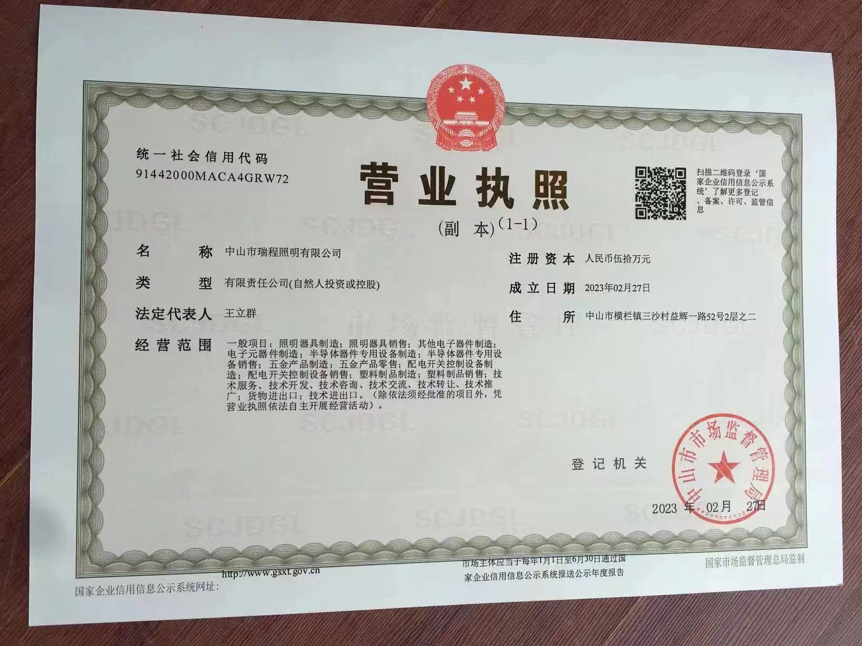 Zhongshan City, Henglan Town, Maohui Industrial Zone (Sansha), Yihui 1st Road, No. 52, 2nd Floor,ZhongShan,GuangDong,China