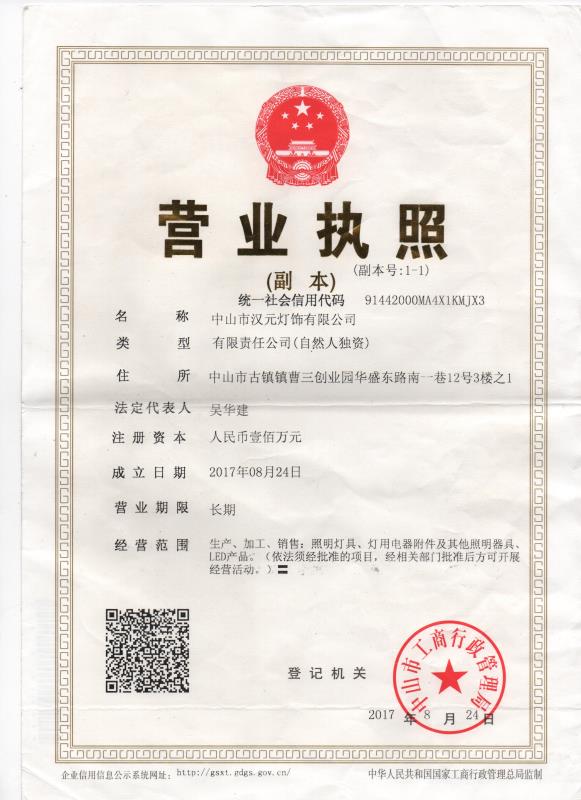 Zhongshan Hanyuan Lighting Co., Ltd. was established on August 24, 2017. It is located in the third floor of No. 12, South 1st Lane, Huasheng East Road, Cao San Pioneer Park, Guzhen Town, Zhongshan City. The company is mainly engaged in research and development, sales: LED new energy products, commercial lighting, downlights, bulbs and tubes, outdoor quantitative products. Self-developed design, mold opening, production and sales.