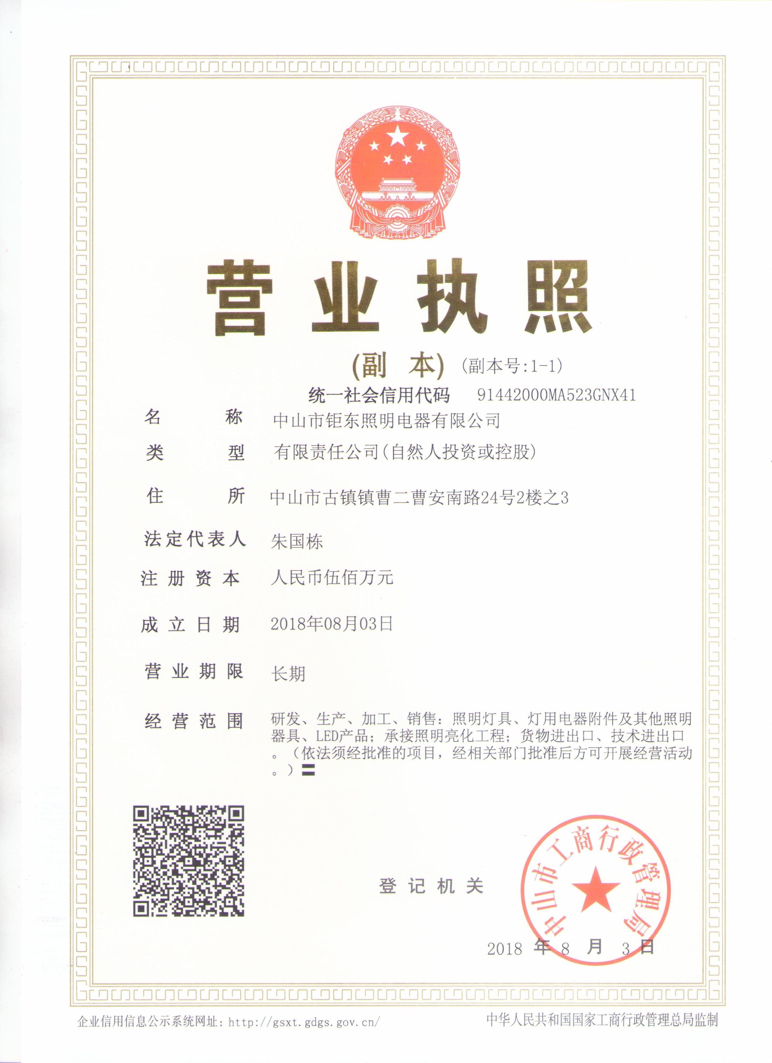Zhongshan judong lighting electric appliance co. LTD