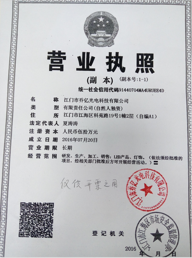 Jiangmen qiaoyi optoelectronic technology co., ltd. was established on July 20, 2016, with its registered address on the 2nd floor, building 1, keyuan road 19, jianghai district, jiangmen city. The main products of the company are: LED projection light, LED spotlights, LED down lights, LED wall washing lights and other series of products. In line with the quality policy of "focus on innovation, industry first, standard management, customer-oriented" and the brand strategy of service-oriented, the company strengthens the continuous innovation ability of products, improves the competitiveness of the system, and continuously provides efficient, safe and environmentally friendly lighting products to channels and end users. Strive to provide users with more perfect products and services. Always adhere to the "quality", "customer first", "reputation", "equality and mutual benefit" business philosophy and good technical services to win the trust of the majority of customers!