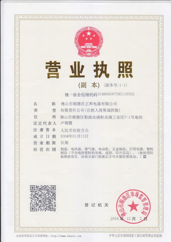 FOSHAN SHUNDE ZHENGHE ELECTRICAL APPLIANCE CO., LTD.is located in Shunde district, which is the prosperous Pearl River Delta. The company is mainly engaged in manufacturing household ventilating fans, industrial fans and other ventilation equipment. Moreover, we have R&D and manufacture of household appliances with all kinds of advanced production equipment and test equipment.