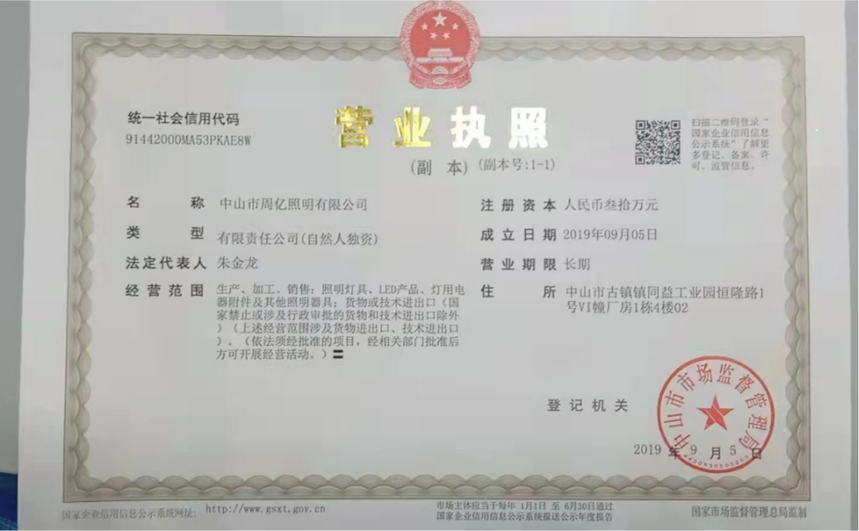 The office address of Zhongshan Zhouyi Lighting Co., Ltd. is located at 02, 4th Floor, Building 1, Building VI, No. 1, Henglong Road, Tongyi Industrial Park, Guzhen Town, Zhongshan City. In the 3 years of the company's development and growth, we have always provided customers with good products and technical support, sound after-sales service, our company mainly engaged in production, processing and sales: lighting fixtures, LED products, electrical accessories for lamps and other lighting equipment ; Import and export of goods or technology. We have good products and a professional sales and technical team. Our company belongs to the industry of Zhongshan processing company. If you are interested in our company's products and services, we look forward to your online message or call for consultation.